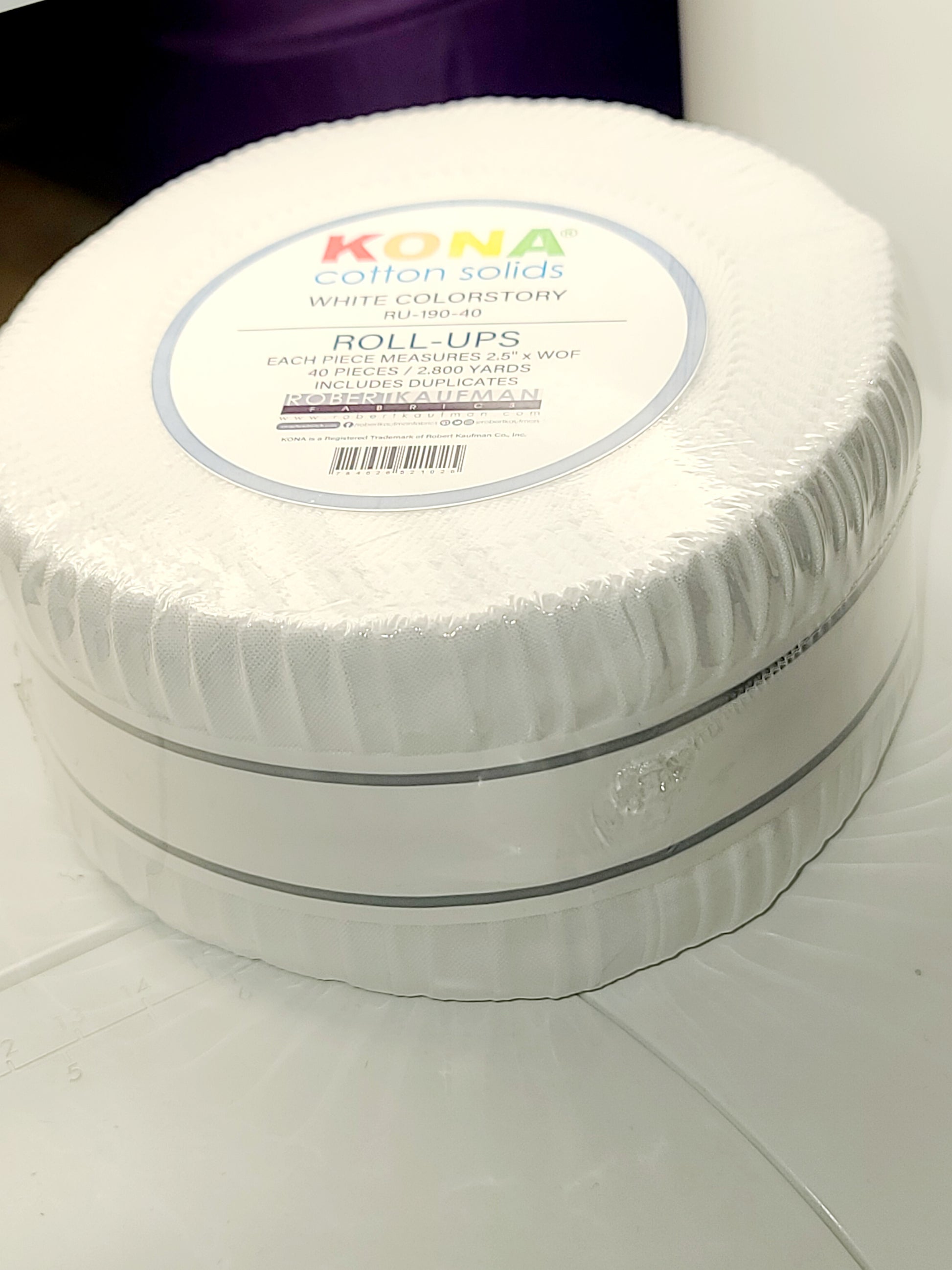 Pk/40 Pre-cut fabric strips 2-1/2" 100% Cotton, Jellyroll, Roll-up, Robert Kaufman KONA White Colorstory RU-190-40
